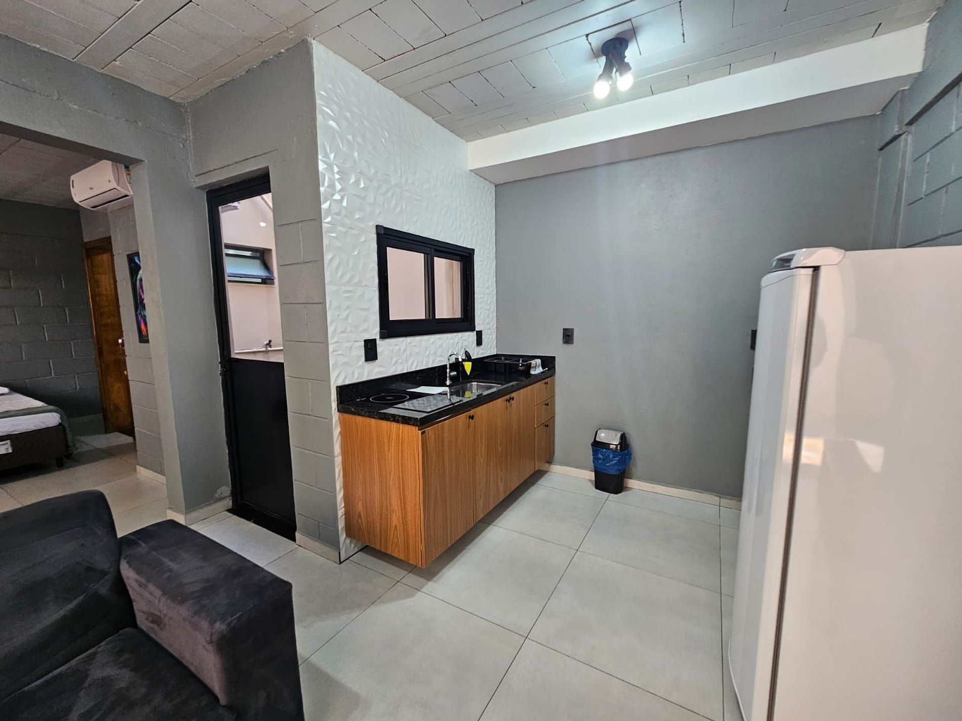 Lindo Studio estilo industrial, totalmente completo no primeiro andar(térreo) do prédio.