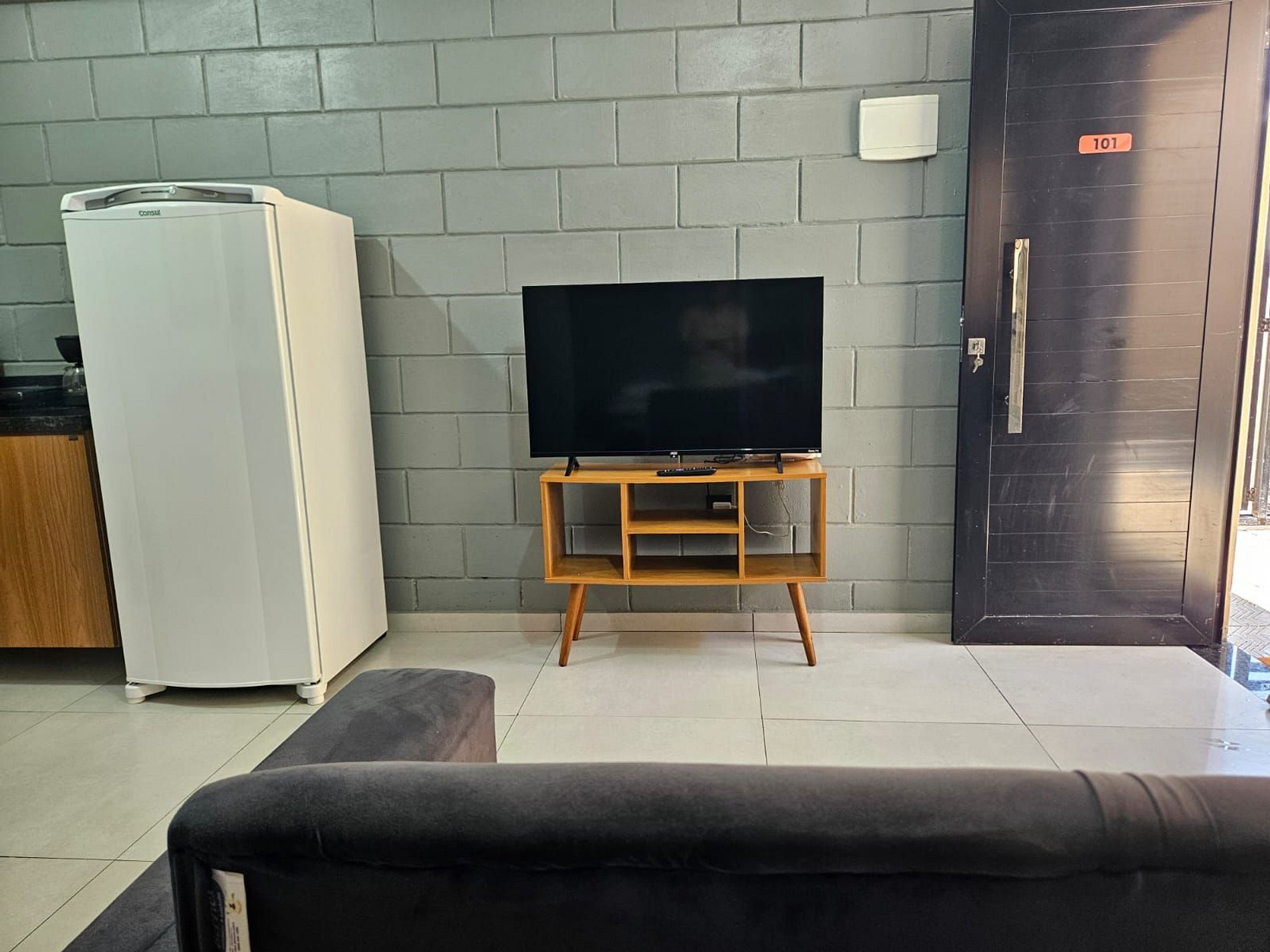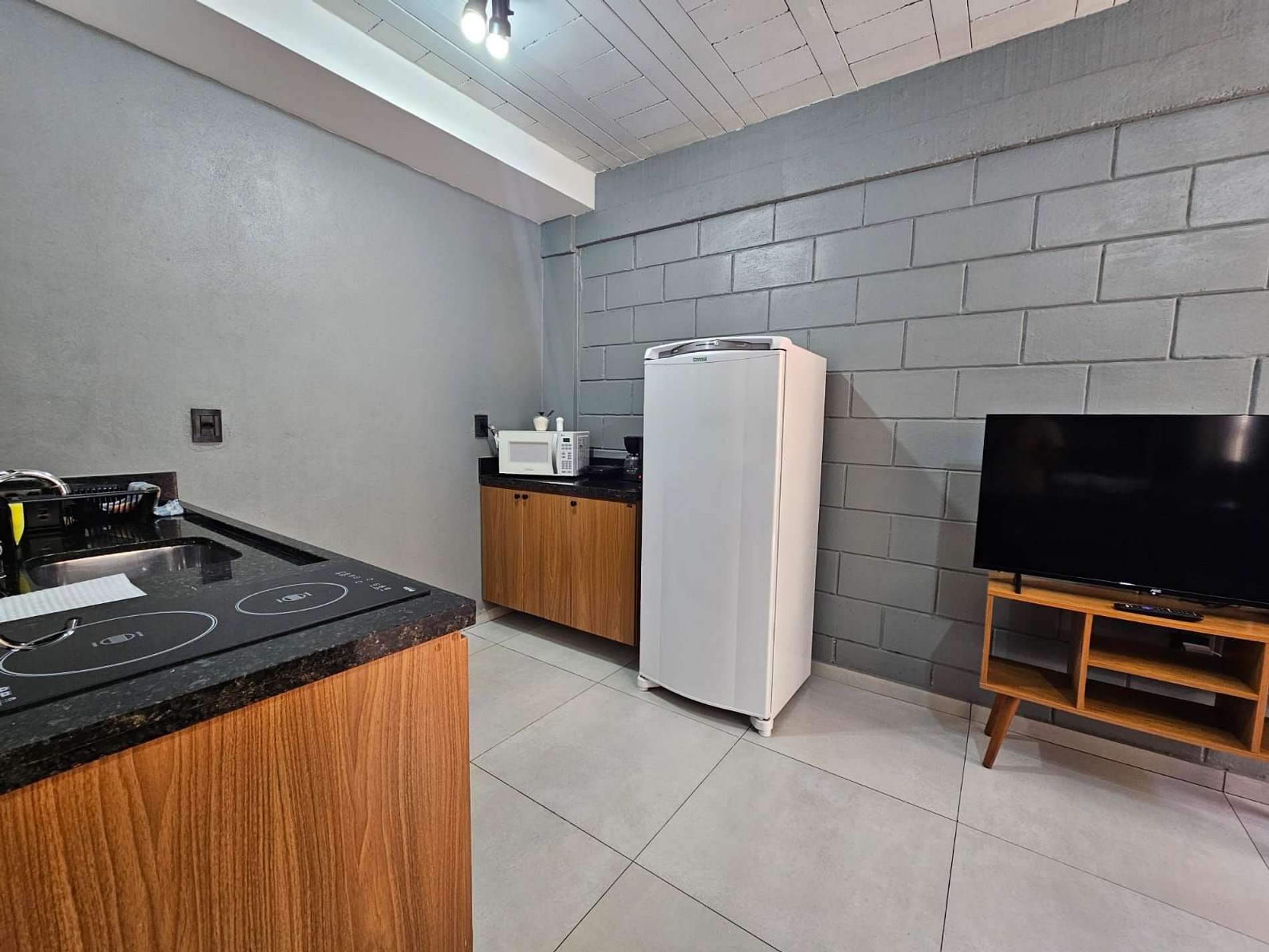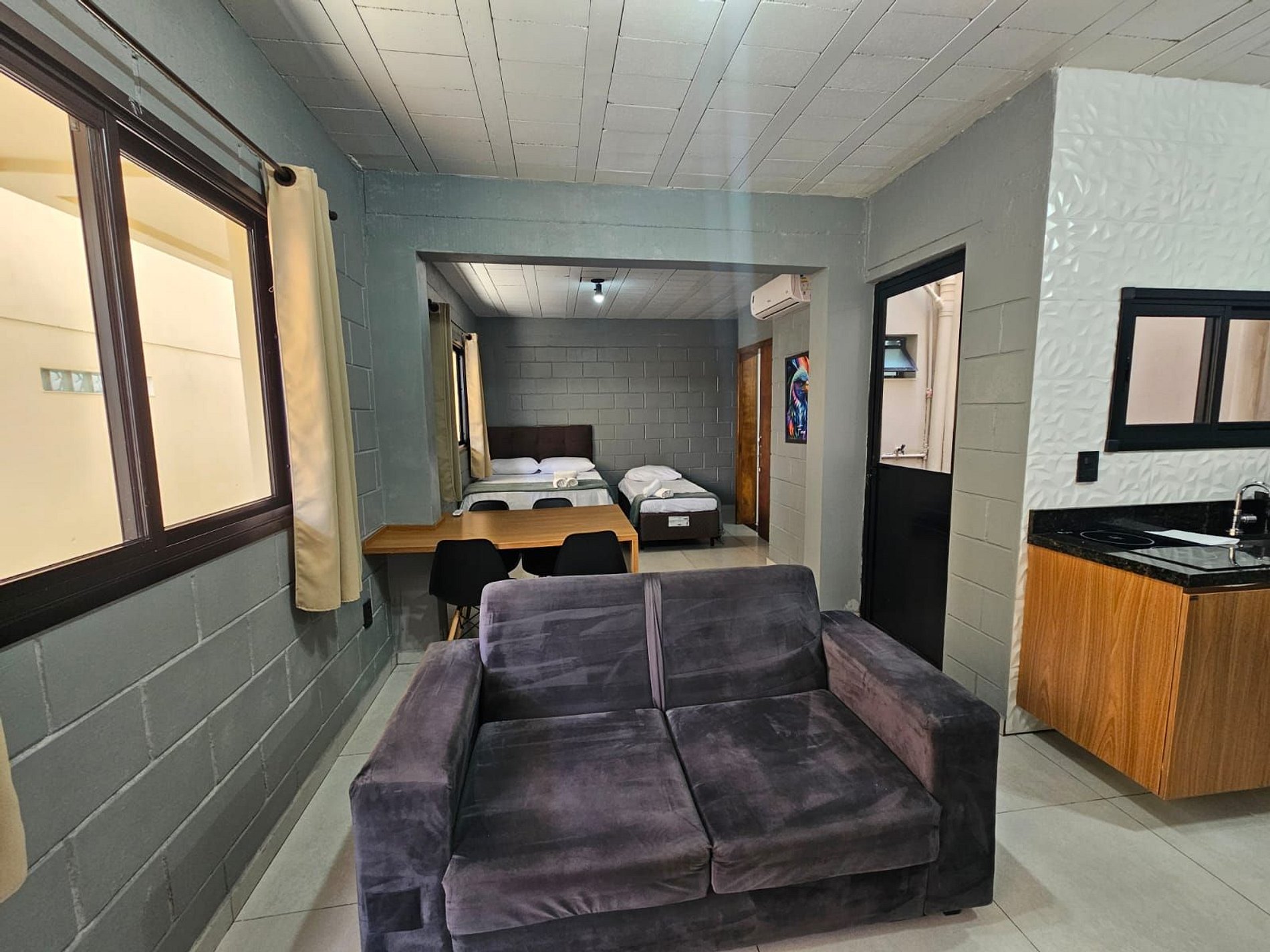 Lindo Studio estilo industrial, totalmente completo no primeiro andar(térreo) do prédio.